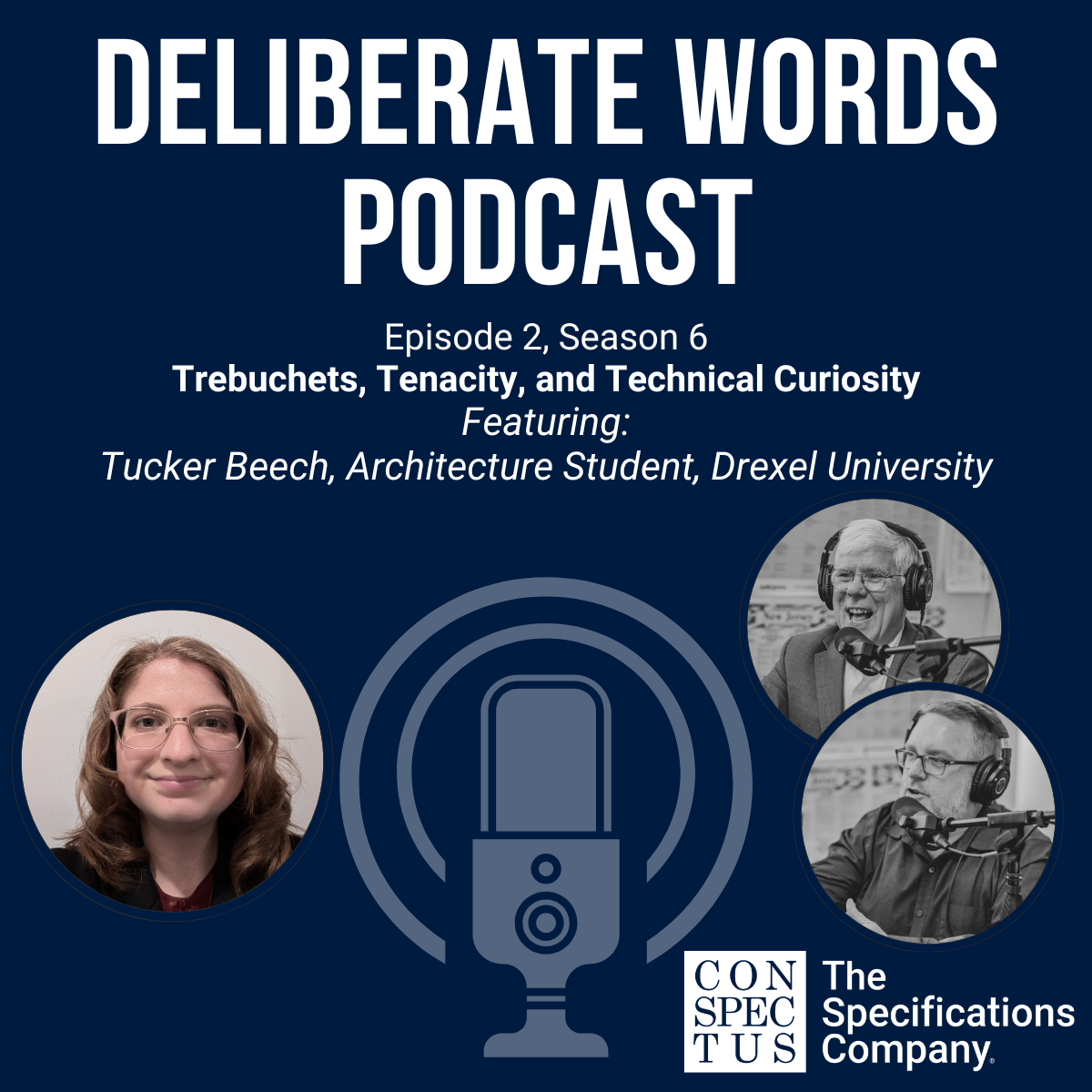 This Deliberate Words episode captures a lively and fun conversation between Dave Stutzman and Steve Gantner of Conspectus and their guest, Tucker Beech, a third-year (of six) Drexel architecture student who first connected with Dave after he guest-spoke to a Drexel class about specifications.
